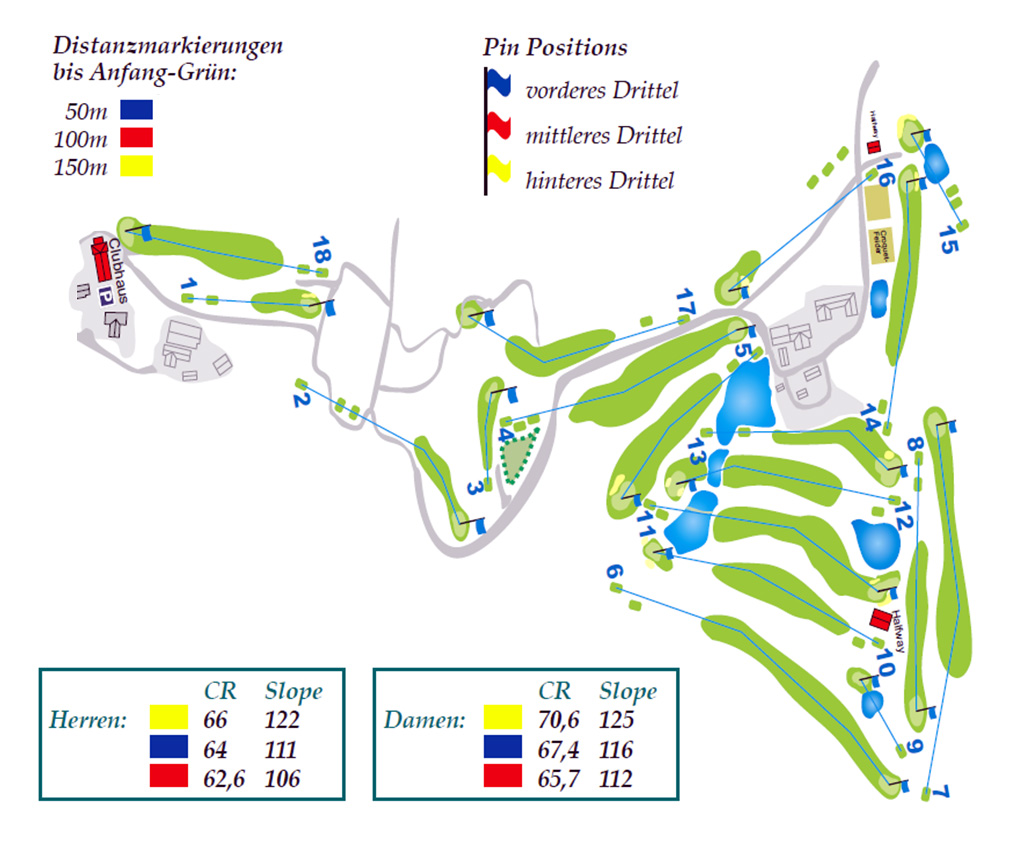Unter Loch 6 schlummert der Namensgeber unseres Clubs, ein antiker römischer Gutshof. Die hügelige, dem natürlichen Gelände angepasste Topografie, verlangt Konzentration und das ist nicht leicht angesichts des Panoramas.